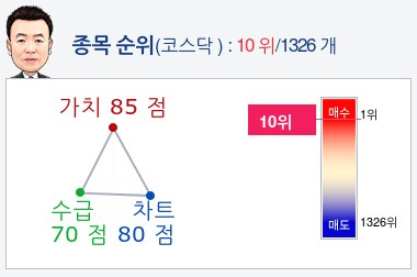 (위의 종목알파고 분석은 기업의 가치, 차트, 재무, 외인/기관 수급 등 과거 데이터를 분석하여 향후 주가의 방향을 예상 하였으며, 높은 수익률을 보장하지는 않습니다. 위의 자료는 투자 참고용으로 제시해 드리는 것이며, `종목알파고 유망종목 Top5`는 주식창앱에서 확인하실 수 있습니다.)