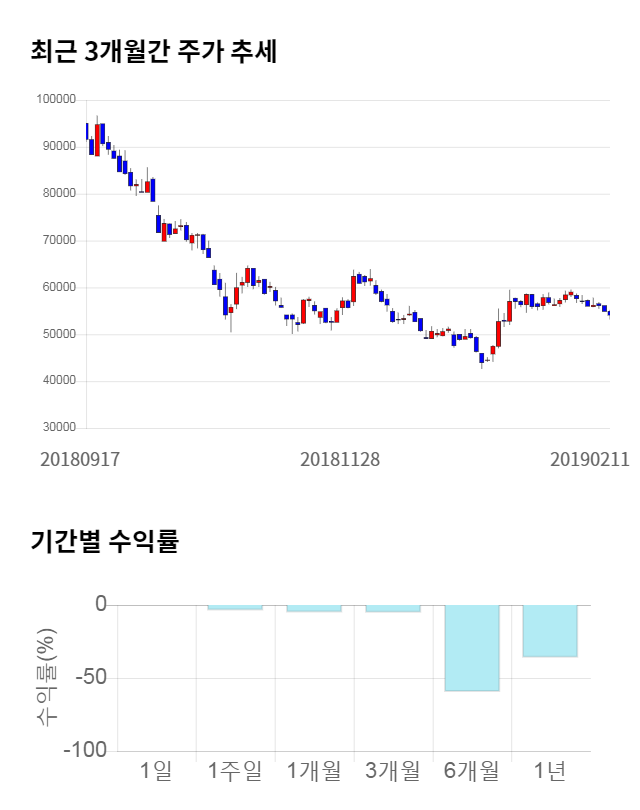 [그림 1] 최근 3개월 간 주가 추세 및 기간별 수익률