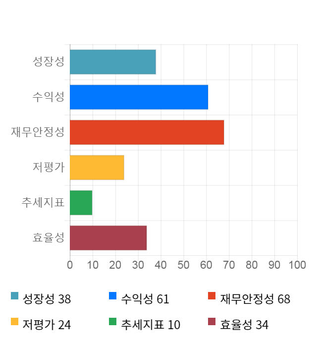 AI 인공지능 종목 분석 시스템을 이용해 성장성, 수익성, 효율성, 안전성, 저평가성, 추세 등 주가 수익률에 영향을 줄 수 있는 6가지 핵심 투자 지표를 점수화하여 종목의 투자 매력도를 계산해보았다.