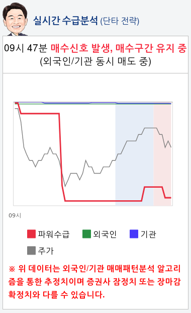 알파고가 분석한 차바이오텍 종목의 외국인·기관 당일 실시간 수급은 현재 외국인은 매도하고 있고 기관은 매도하고 있으며, 종합 수급분석 평가지표인 파워수급은 09시 47분 부터 현재까지 매수 에너지가 더 높은 것으로 분석하고 있다.