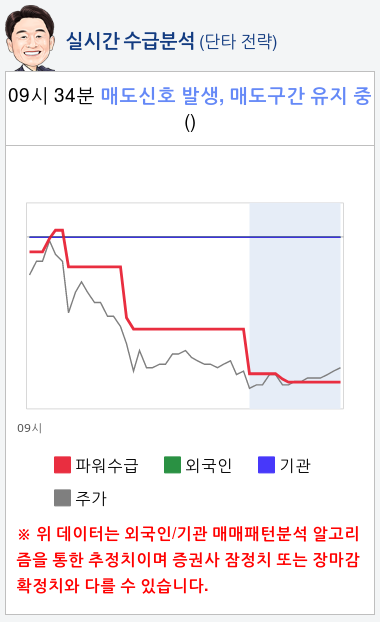 외국인, 기관 수급을 보면 외국인은 2일 연속매수하고 있고, 기관은 4일 연속 매수하였다. 알파고는 외국인, 기관의 추가 매수 가능성을 48%로 예상하고 있다.