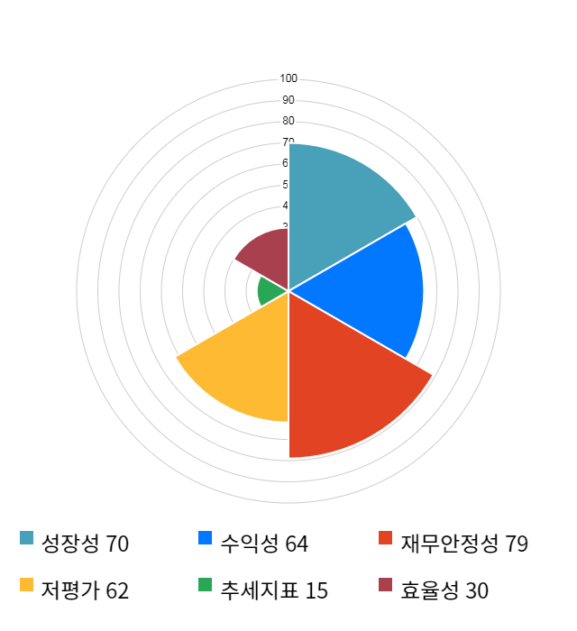 AI 인공지능 종목 분석 시스템을 이용해 성장성, 수익성, 효율성, 안전성, 저평가성, 추세 등 주가 수익률에 영향을 줄 수 있는 6가지 핵심 투자 지표를 점수화하여 종목의 투자 매력도를 계산해보았다.