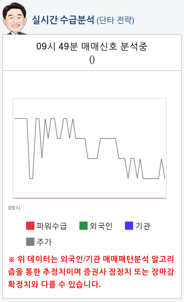 알파고가 분석한 대화제약 종목의 외국인·기관 당일 실시간 수급은 현재 외국인은 관망하고 있고 기관은 관망하고 있으며, 종합 수급분석 평가지표인 파워수급은 09시 00분 부터 현재까지 추정이 불가한 것으로 분석하고 있다.