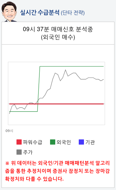 알파고가 분석한 신라젠 종목의 외국인·기관 당일 실시간 수급은 현재 외국인은 매수하고 있고 기관은 관망하고 있으며, 종합 수급분석 평가지표인 파워수급은 09시 00분 부터 현재까지 추정이 불가한 것으로 분석하고 있다.