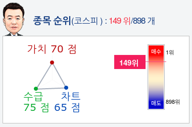 알파고가 가치, 수급, 차트로 평가한 카카오종목의 현재 종합순위는 코스피 898개 종목 중 149위로, 알파고는 카카오기업의 가치와 수급을 높게 평가 분석하고 있다.