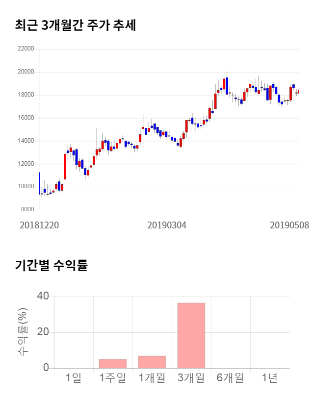 주가 모멘텀은 좋은 편에 속했다. 최근 3개월 수익률은 36.67%의 상승폭을 기록했다. 최근 1개월 수익률이 6.96%를 기록하며 좋은 모멘텀을 유지하고 있다.