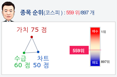 (위의 종목알파고 분석은 기업의 가치, 차트, 재무, 외인/기관 수급 등 과거 데이터를 분석하여 향후 주가의 방향을 예상 하였으며, 높은 수익률을 보장하지는 않습니다. 위의 자료는 투자 참고용으로 제시해 드리는 것이며, `종목알파고 유망종목 Top5`는 주식창앱에서 확인하실 수 있습니다.)
