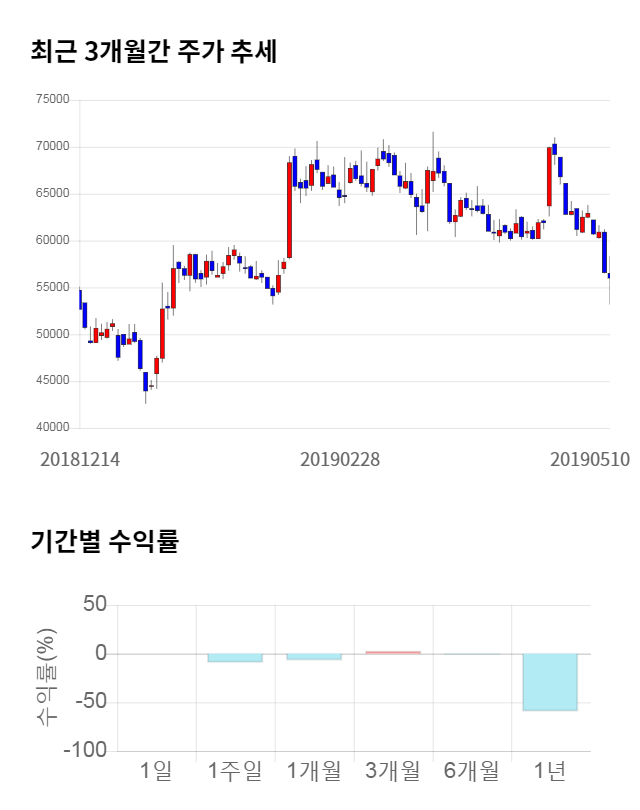 [그림 1] 최근 3개월 간 주가 추세 및 기간별 수익률