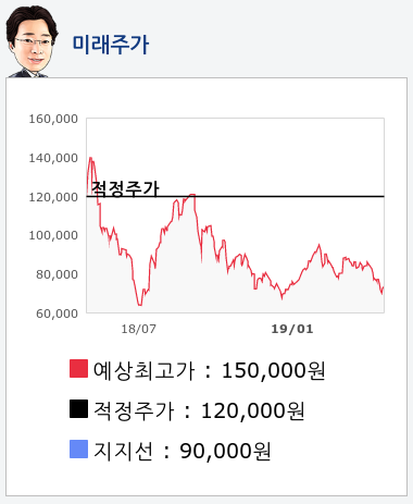 알파고의 재무데이터 분석 결과에 따르면 적정주가는 120,000원을 예상하고 있으며, 목표주가는 150,000원, 지지선은 90,000원 으로 예상하고 있다.