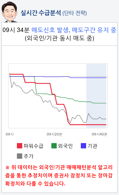 알파고가 분석한 에이치엘비 종목의 외국인·기관 당일 실시간 수급은 현재 외국인은 매도하고 있고 기관은 매도하고 있으며, 종합 수급분석 평가지표인 파워수급은 09시 34분 부터 현재까지 매도 에너지가 더 높은 것으로 분석하고 있다.