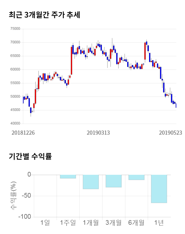 [그림 1] 최근 3개월 간 주가 추세 및 기간별 수익률
