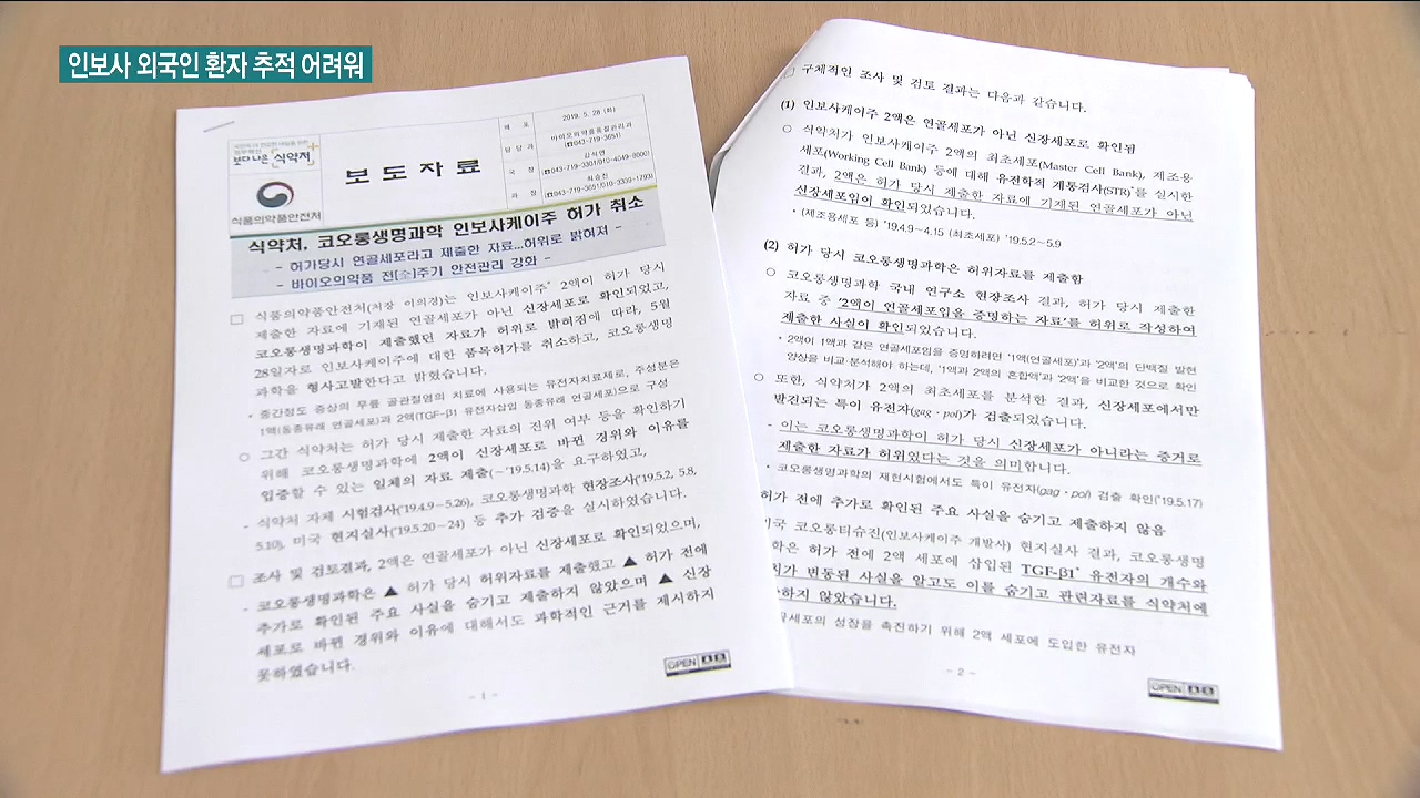 환자 대부분이 고령인데다, 의료법상 인터넷에 '인보사 시술'이 아닌 '유전자 주사 치료'로만 홍보가 가능한 까닭에 환자 4명 가운데 3명은 아예 식약처에 신고하지 않았거나 처방 사실 자체를 모르는 상황입니다.