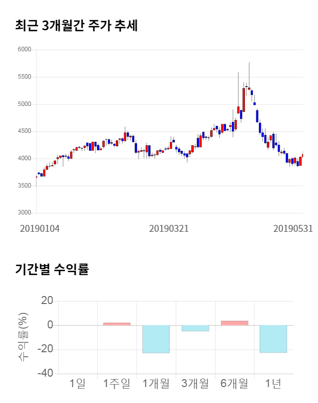 [그림 1] 최근 3개월 간 주가 추세 및 기간별 수익률