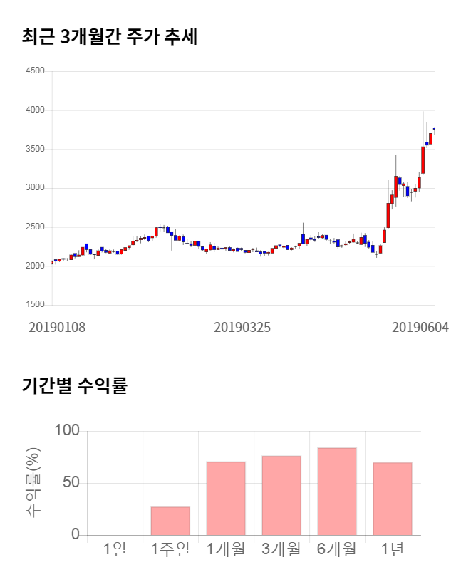 [그림 1] 최근 3개월 간 주가 추세 및 기간별 수익률