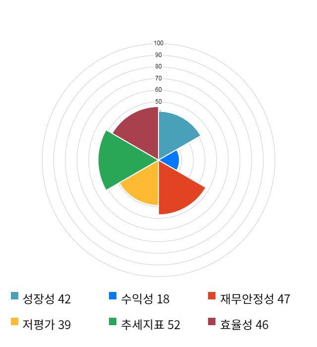 AI 인공지능 종목 분석 시스템을 이용해 성장성, 수익성, 효율성, 안전성, 저평가성, 추세 등 주가 수익률에 영향을 줄 수 있는 6가지 핵심 투자 지표를 점수화하여 종목의 투자 매력도를 계산해보았다.