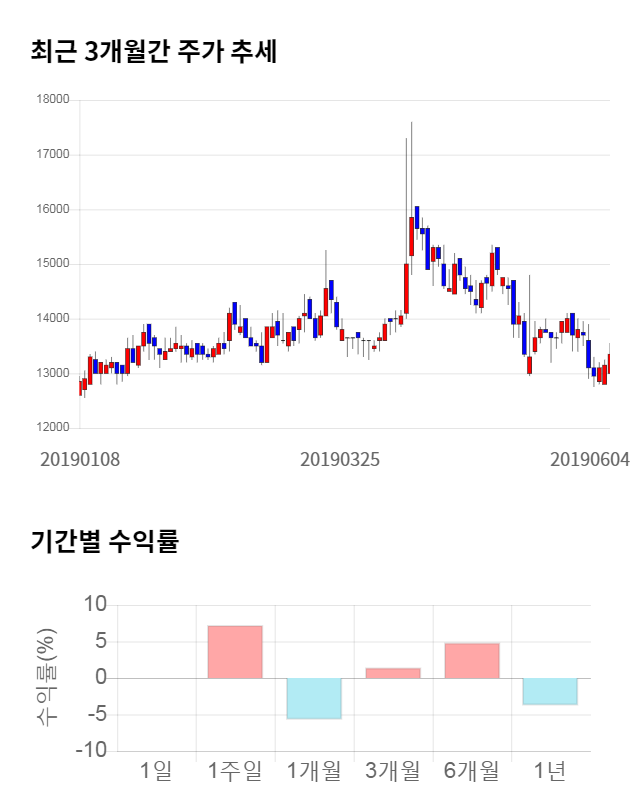 [그림 1] 최근 3개월 간 주가 추세 및 기간별 수익률