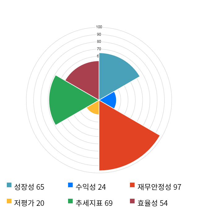 AI 인공지능 종목 분석 시스템을 이용해 성장성, 수익성, 효율성, 안전성, 저평가성, 추세 등 주가 수익률에 영향을 줄 수 있는 6가지 핵심 투자 지표를 점수화하여 종목의 투자 매력도를 계산해보았다.