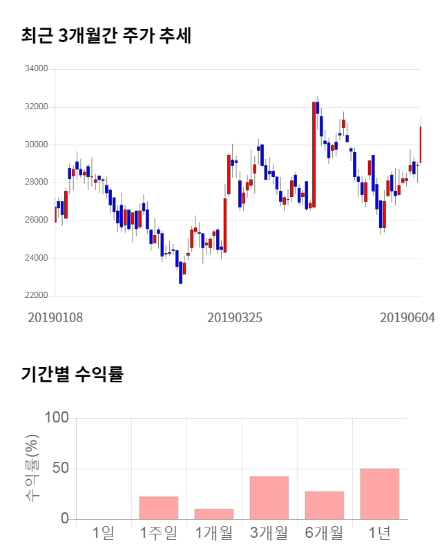 주가 모멘텀은 좋은 편에 속했다. 최근 3개월 수익률은 42.89%의 상승폭을 기록했다. 최근 1개월 수익률 또한 10.7% 상승하며 좋은 모멘텀을 보이고 있다.