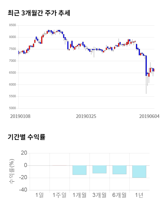 [그림 1] 최근 3개월 간 주가 추세 및 기간별 수익률