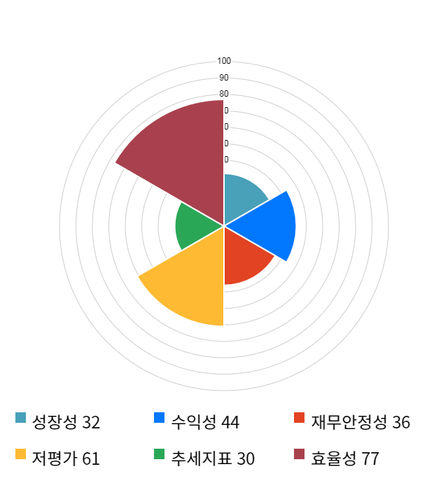 AI 인공지능 종목 분석 시스템을 이용해 성장성, 수익성, 효율성, 안전성, 저평가성, 추세 등 주가 수익률에 영향을 줄 수 있는 6가지 핵심 투자 지표를 점수화하여 종목의 투자 매력도를 계산해보았다.