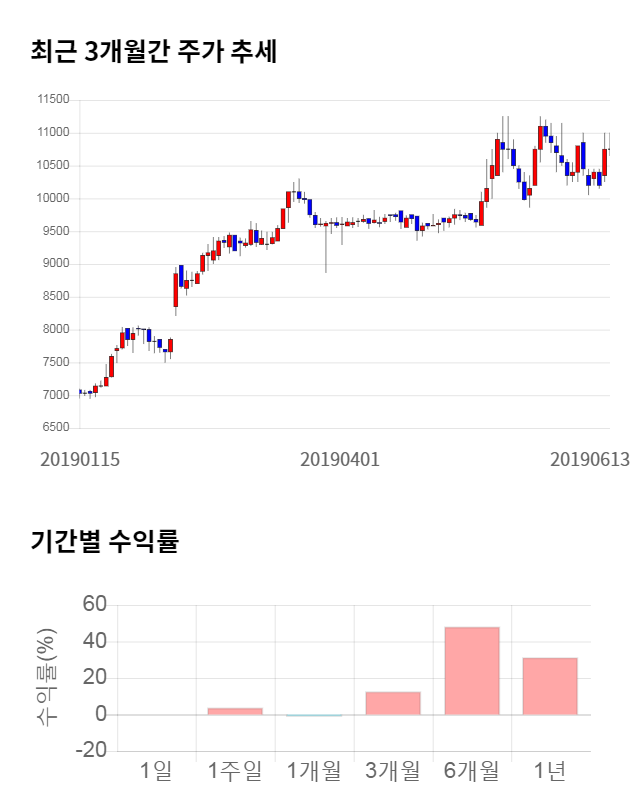 [그림 1] 최근 3개월 간 주가 추세 및 기간별 수익률