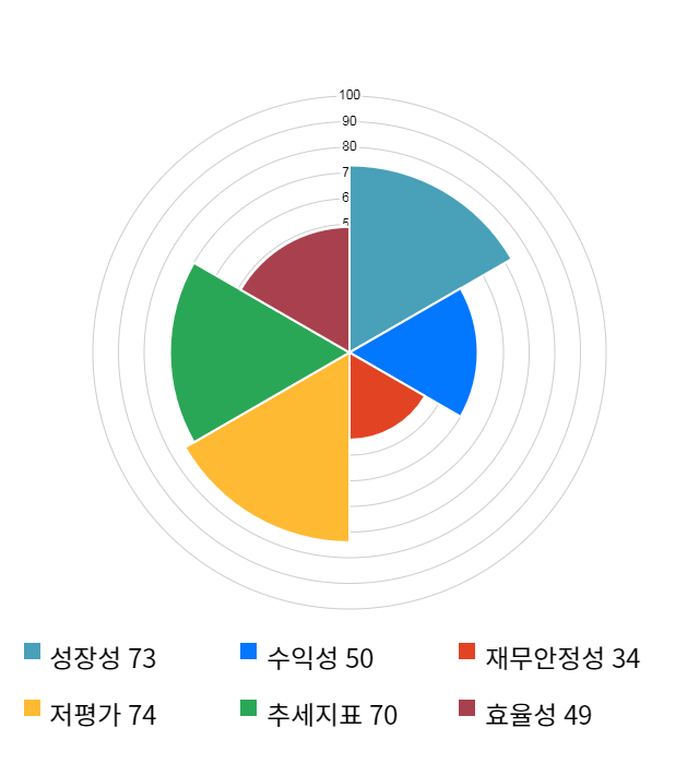 AI 인공지능 종목 분석 시스템을 이용해 성장성, 수익성, 효율성, 안전성, 저평가성, 추세 등 주가 수익률에 영향을 줄 수 있는 6가지 핵심 투자 지표를 점수화하여 종목의 투자 매력도를 계산해보았다.