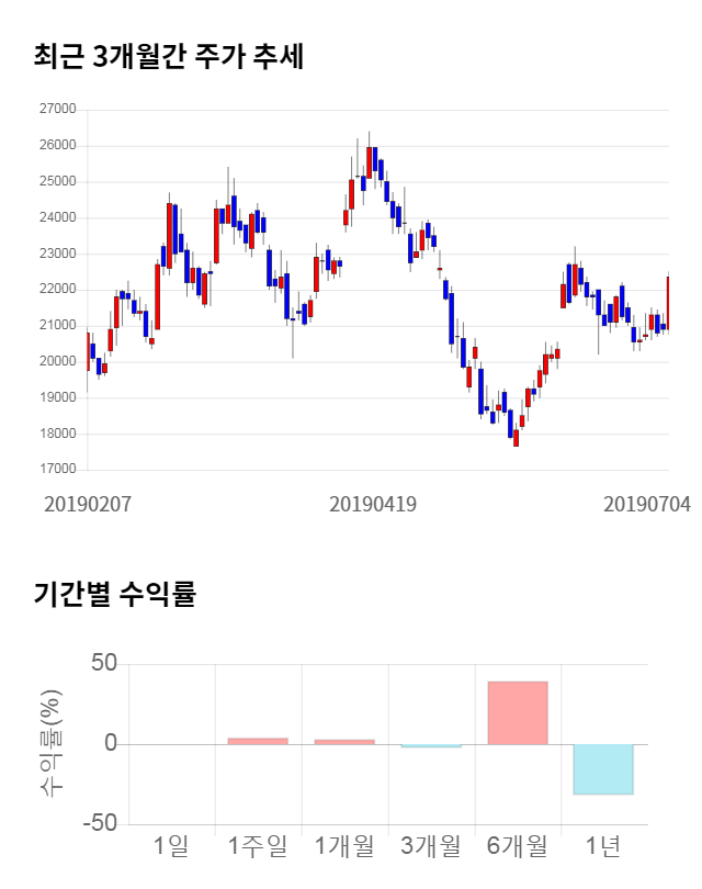 [그림 1] 최근 3개월 간 주가 추세 및 기간별 수익률
