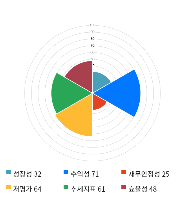 AI 인공지능 종목 분석 시스템을 이용해 성장성, 수익성, 효율성, 안전성, 저평가성, 추세 등 주가 수익률에 영향을 줄 수 있는 6가지 핵심 투자 지표를 점수화하여 종목의 투자 매력도를 계산해보았다.