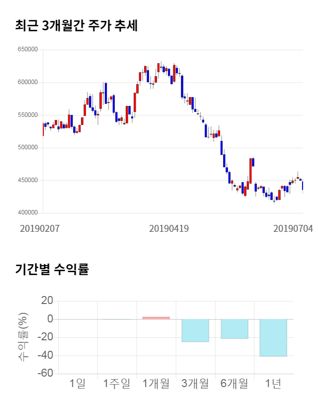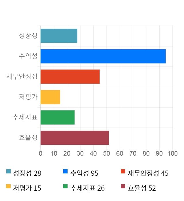 주가 모멘텀은 평범한 수준이었다. 최근 1개월 수익률이 2.9%, 3개월 수익률은 -25.46%, 6개월 수익률은 -21.94%를 기록했다.