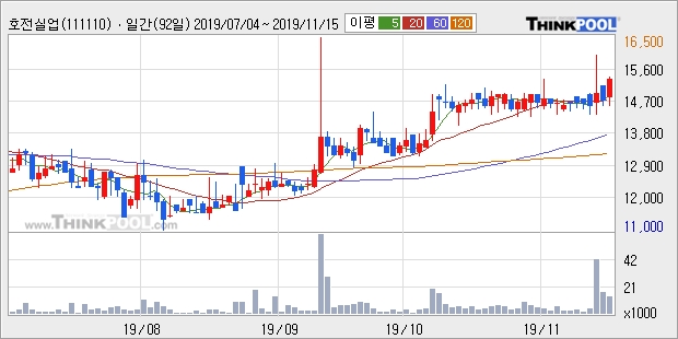 15일 코스피시장에서 스포츠웨어 및 아웃웨어 OEM 전문업체인 호전실업(111110)이 높은 상승세를 보이고 있다.