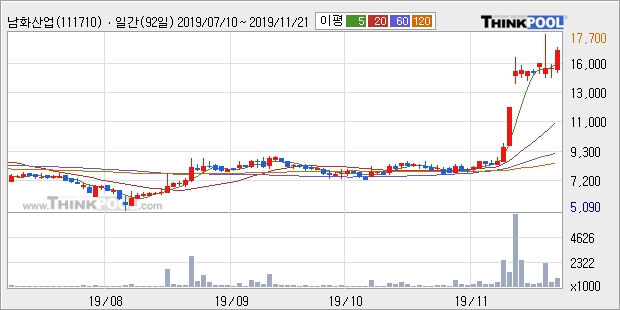 21일 오후 남화산업(111710)이 높은 상승세를 보이고 있다.