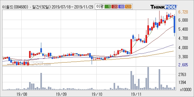 장시작, 이월드의 주가는 5490원으로 전일대비 410원(8.07%) 상승출발하였다.
