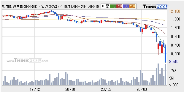 19일 오후 맥쿼리인프라(088980)가 하락세를 보이고 있다.
