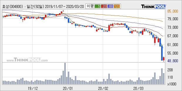 코스피시장에서 효성그룹의 지주사업 영위하는 기업인 효성(004800)이 장 막판 급등세를 나타내고 있다.