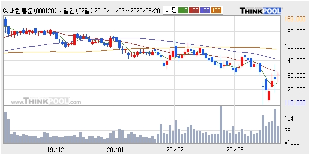 코스피시장에서 CJ대한통운(000120)이 큰 폭으로 상승하며 장을 마감했다.