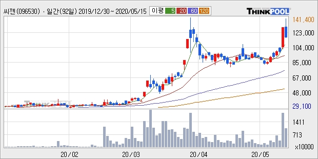 오늘 씨젠은 전체 주식수의 40.93%에 해당하는 1073만6717주가 거래되고 있는데 전일 거래량 대비 55.0% 수준이다.