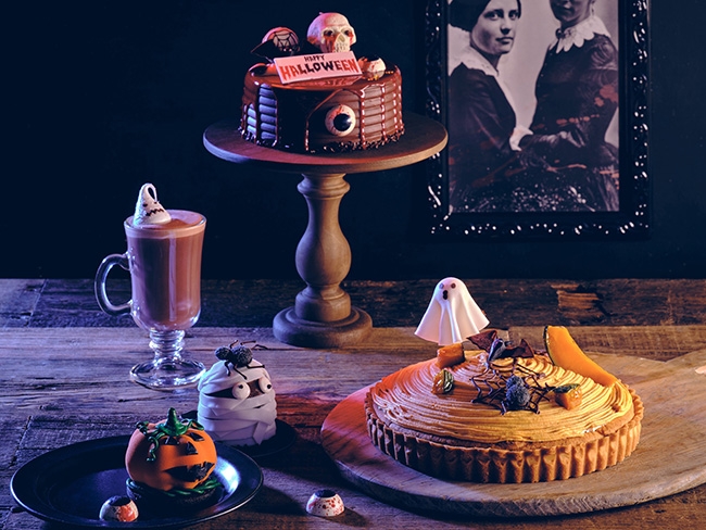 먼저 그랜드 인터컨티넨탈 서울 파르나스의 그랜드 델리는 10월 23일부터 31일까지 뉴욕 현지 출신의 파티시에 에릭 칼라보케가 선보이는 호러 콘셉트의 할로윈 디저트를 판매한다. 해골 모양으로 데커레이션한 할로윈 초콜릿 케이크, 단호박 슬라이스를 구워 펌킨 크림치즈를 얹은 펌킨 타르트, 슈가 페이스트로 미이라를 형상화한 미이라 조각케이크, 호박 모양의 펌킨 무스 조각케이크, 유령 머랭이 올라간 고스트 핫초콜릿까지 총 5종을 만날 수 있다. 인터컨티넨탈 서울 코엑스 로비라운지도 같은 기간 동안 블러드 치즈 무스 케이크를 판매한다. 마스카르포네 치즈 무스에 상큼한 체리 필링을 넣고 고스트 장식을 올려 할로윈 무드를 더했다.