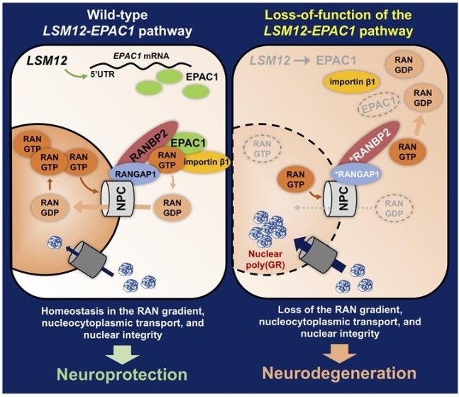연구팀은 또 `LSM12`-`EPAC1` 유전자 경로를 통해 발현된 단백질이 RAN 단백질 분포를 조절하는 세부 원리도 규명했다.