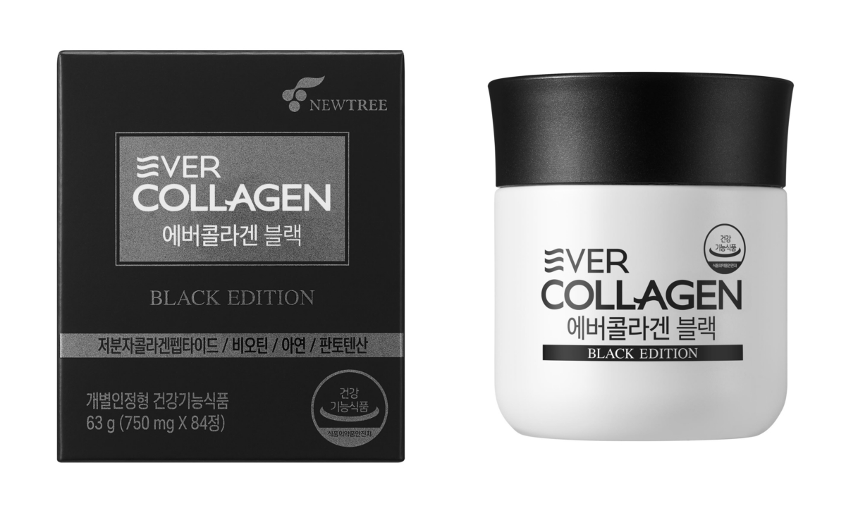 매끈한 피부와 풍성한 모발 관리, 정상적인 면역기능 구축과 활력 에너지 생성 등 현대인의 다양한 건강 고민을 개선하기 위해, ‘에버콜라겐 블랙’에는 국내 최초 식약처 피부 개선 2중 기능성을 인정받은 기능성 콜라겐 원료 저분자콜라겐펩타이드를 기본으로 프랑스산 비오틴, 영국산 판토텐산, 미국산 아연 등이 함께 배합됐다.