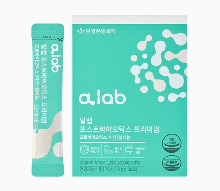 ‘알랩 포스트바이오틱스 프리미엄’은 유산균 증식 및 유해균 억제, 배변 활동 원활에 도움을 주는 ‘유산균’은 물론, 정상적인 면역기능 및 세포분열에 필요한 ‘아연’과 유해산소로부터 세포를 보호하는 데 필요한 ‘셀레늄’이 더해져, 3중 기능성을 인정받은 유산균 건강기능식품이다.