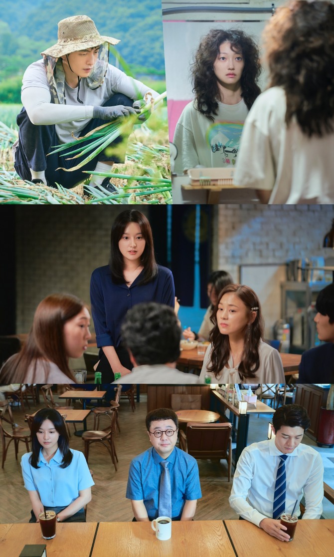 먼저 둘째 염창희(이민기 분)는 ‘프로 일꾼’ 모드로 파 뽑기에 열중하고 있다. 주말에도 쉬지 못하고 부모님의 밭일을 돕고 있는 것. 무더위에 지친 듯 공허한 눈빛과는 반대로 파를 묶는 손길은 능숙하기 그지없다. 한편 첫째 염기정(이엘 분)은 거울 앞에 서서 절망에 빠졌다. 지나치게 볶아진 머리를 보고 ‘현실 부정’을 거듭해 보지만, 폭탄 머리는 짜증을 치솟게 만든다.