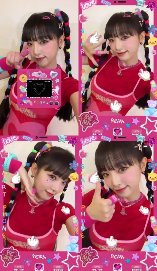 최예나는 2일 오후 공식 인스타그램 숏폼 영상 서비스 릴스를 통해 깜찍한 `스마트폰` 필터를 공개해 눈길을 모았다.