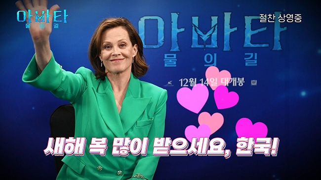 시고니 위버는 “‘아바타: 물의 길’을 향한 여러분들의 성원이 정말 대단하다고 들었다. 진심으로 감사하다”며 감탄하는가 하면 “새해에는 행복 가득하고 여러분이 원하셨던 일들 다 이루시길 바란다”며 새해 덕담과 응원의 말을 전했다.