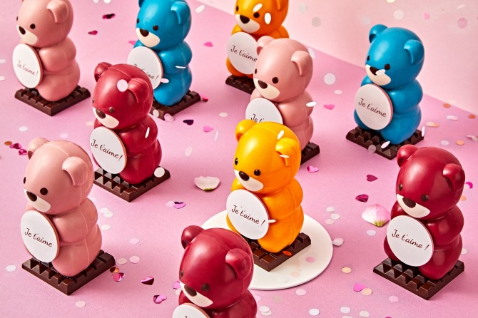 사랑스러운 곰돌이 모양의 두두 베어는 레드 컬러의 라즈베리, 다홍 컬러의 딸기, 라즈베리와 화이트 조화의 핑크와 화이트 컬러 네 가지 옵션으로 선보인다. 사전 예약 요청 시 초콜릿 안에 사랑하는 사람의 이니셜 또는 전하고픈 짧은 메시지를 선택해 담을 수 있다.
