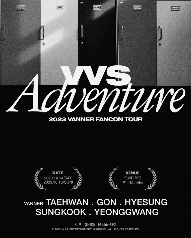 공연 개최 소식과 함께 공개된 포스터는 흑백톤 무드 속 멤버들의 이름이 담긴 5개의 사물함 위로 이번 팬콘서트 제목인 'VVS ADVENTURE 2023 VANNER FANCON TOUR'라는 글자가 새겨져 있어 VANNER(배너)가 팬콘서트에서 보여줄 모습에 관심이 집중되고 있다.
