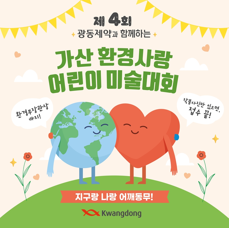 광동제약은 어린이 환경보전 의식 함양을 위한 '제4회 가산 환경사랑 어린이 미술대회'를 열고 작품을 공모한다고 21일 밝혔다.