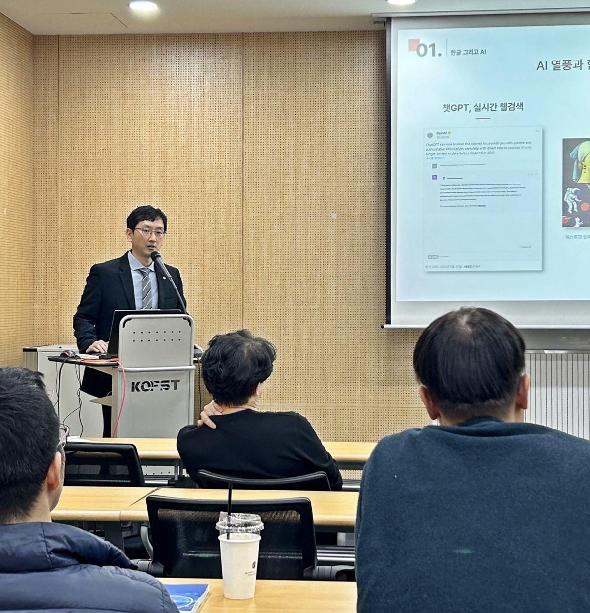정지환 CTO는 이 자리에서 공공기관에서 사용하는 한글 문서는 폐쇄형이 아닌 개방형 포맷이라는 점을 다시 한번 강조하고, 한컴이 기술 공개와 표준화 작업을 통해 문서의 데이터화에 기여하고 있는 내용을 설명했다. 한컴의 HWPX 포맷이 전자문서 국제표준으로 제정되도록 시행하는 적극적인 활동을 알리고, AI(인공지능) 학습 데이터로 한글 문서가 활용되고 있는 실제 사례를 언급하며 한글이 세계적인 기술 트렌드에 발맞춰 AI 및 데이터 플랫폼으로써 수행하는 기능과 역할을 소개했다.