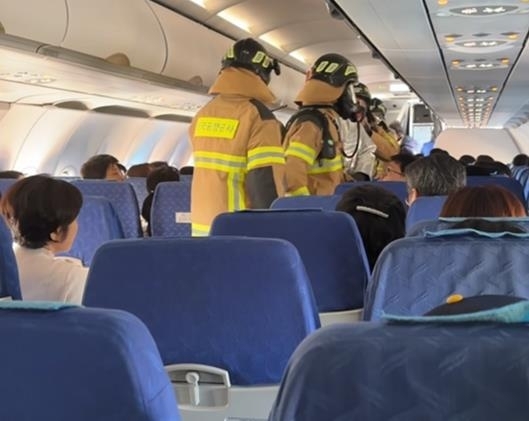 객실 승무원이 기내 소화기로 곧바로 연기를 진압했으며, 공항소방대가 출동해 기내를 점검하고 있다.
