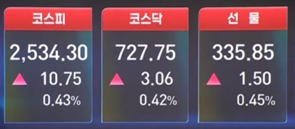 이날 코스피는 전 거래일보다 10.75포인트(+0.43%) 상승한 2,534.30에 장을 열었다.