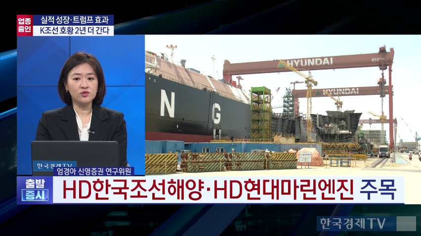 23일 한국경제TV에 출연한 엄경아 신영증권 연구위원은 "(조선주) 2024년 달성 실적으로 하면 지금 밸류에이션 부담이 있다"며 "단기간에 거의 주가가 2배가 된 상황"이라고 설명했다. 그러면서도 "올해부터 내년까지 달성할 실적을 당겨서 생각하면 가격 부담이 많이 없어진다"고 분석했다. 트럼프 행정부 출범으로 조선업 호황이 기대된다고 언급했다. 이어 LNG선 확대와 에너지 비상사태 선언 관련 부분에서 수익성이 있다고 강조했다.